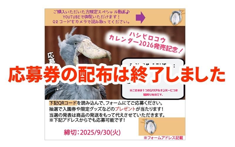また、応募券にはハシビロコウカレンダー2026を当園でご購入いただいたお客様限定のスペシャル動画もご用意しました!