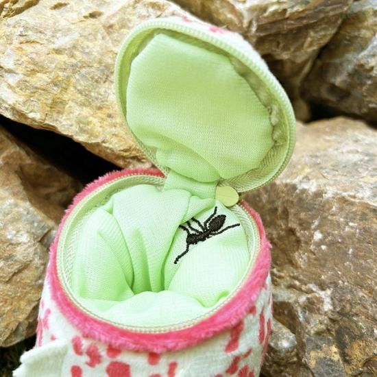 チャックを開けば、そこにはアリさんが1匹刺繍されています。