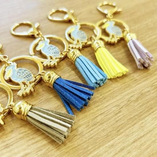 鳥さんのパーツにカラフルなタッセルがついたおしゃれなキーホルダーです!