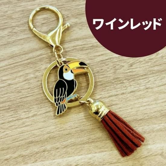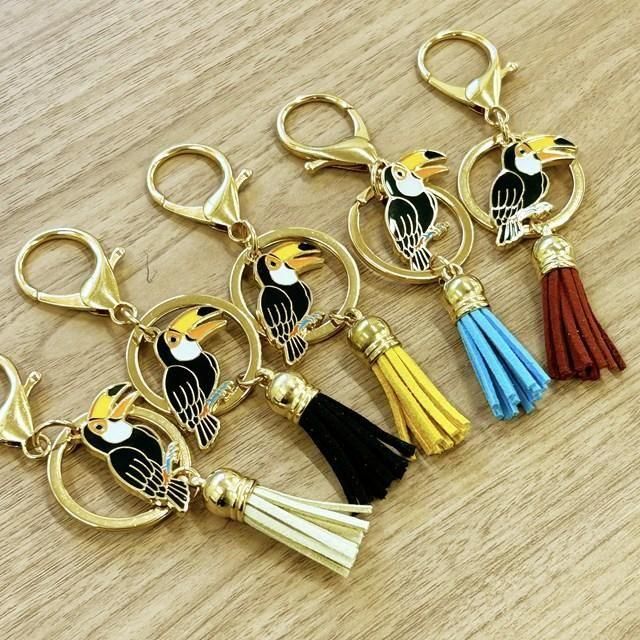 鳥さんのパーツにカラフルなタッセルがついたおしゃれなキーホルダーです!