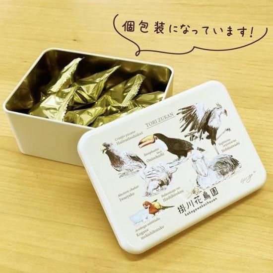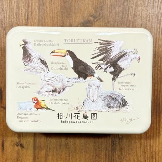 人気鳥6種のイラストがデザインされた掛川花鳥園オリジナルのチョコクランチ缶です!