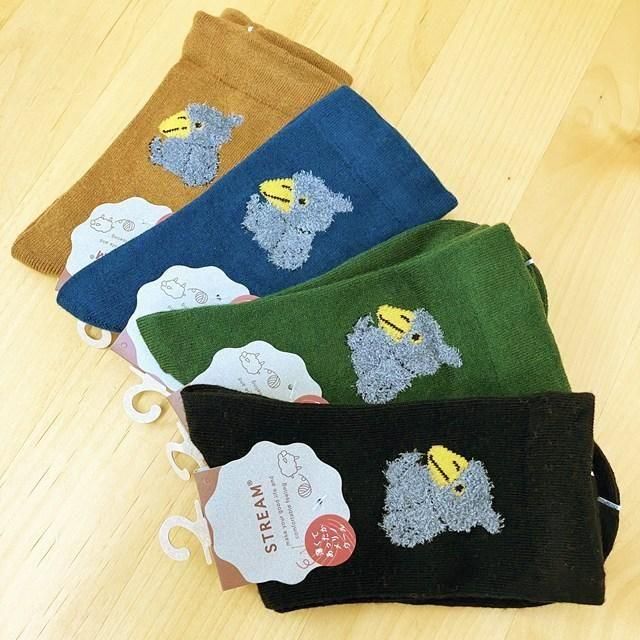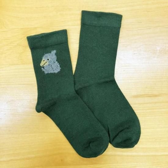 もこっと可愛らしくデザインされたハシビロコウが特徴の靴下です。
